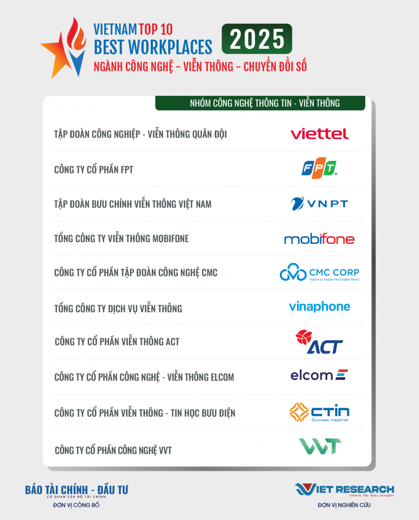 CÔNG BỐ TOP 10 NƠI LÀM VIỆC TỐT NHẤT VIỆT NAM – NGÀNH CÔNG NGHỆ – VIỄN THÔNG – CHUYỂN ĐỔI SỐ