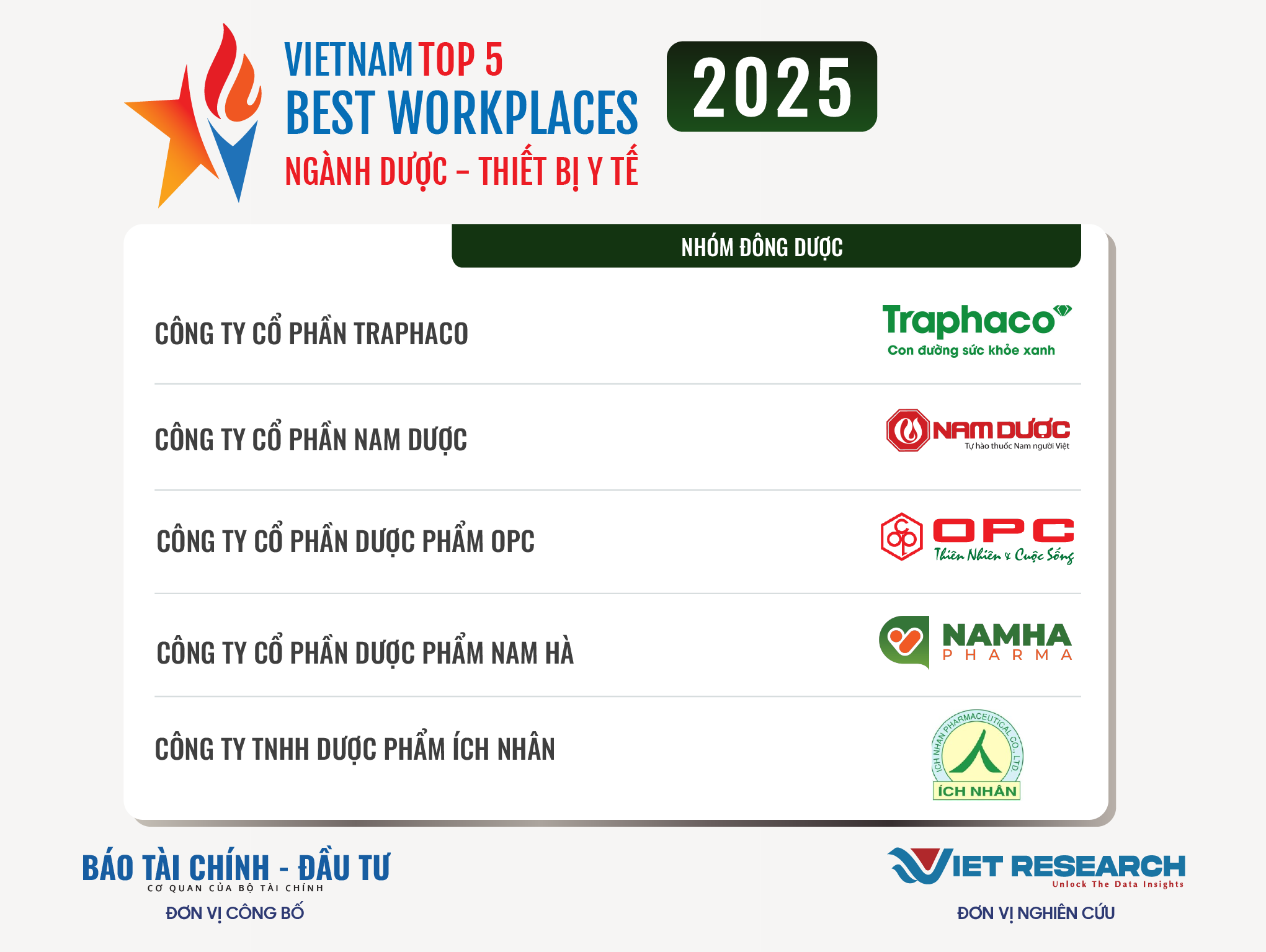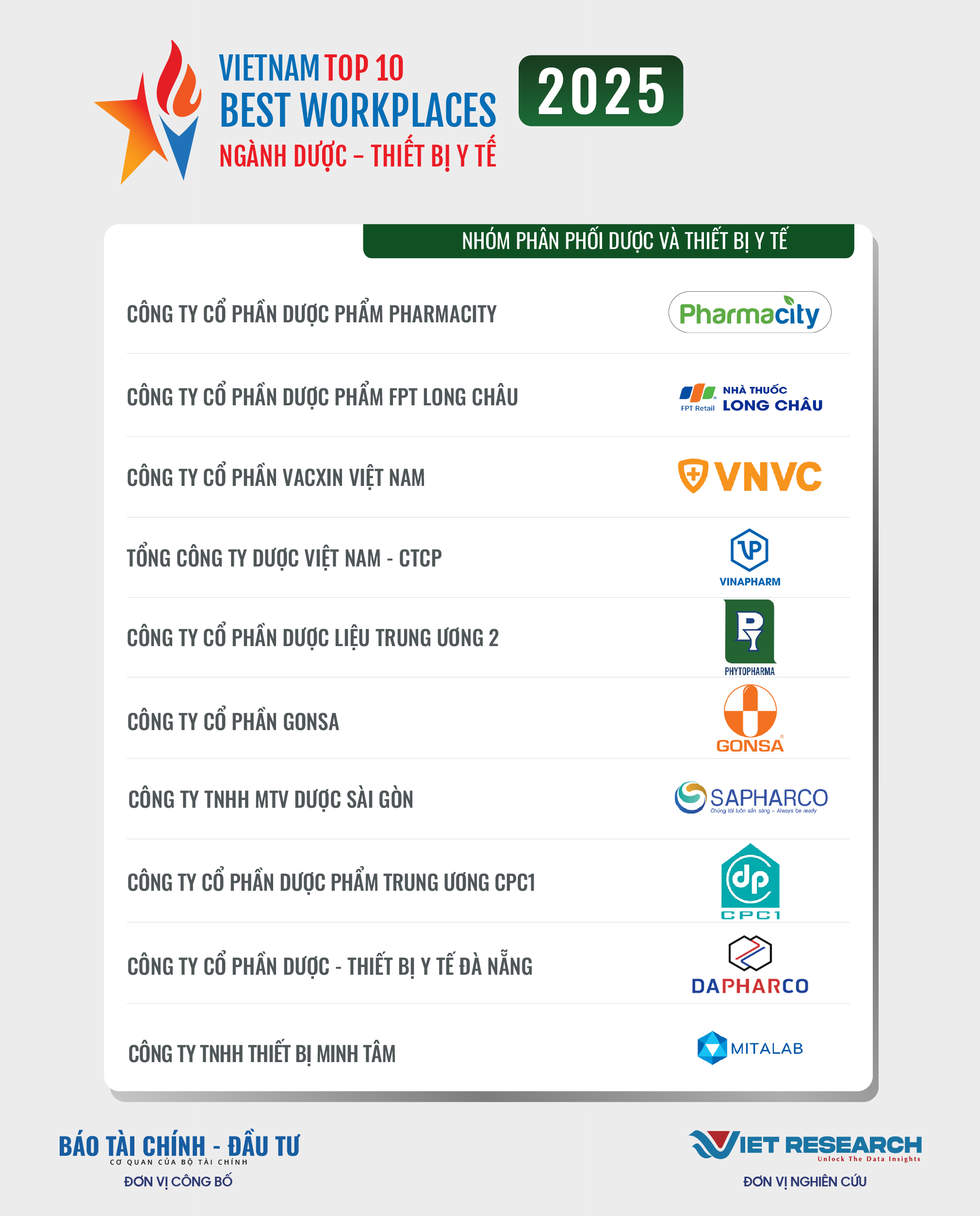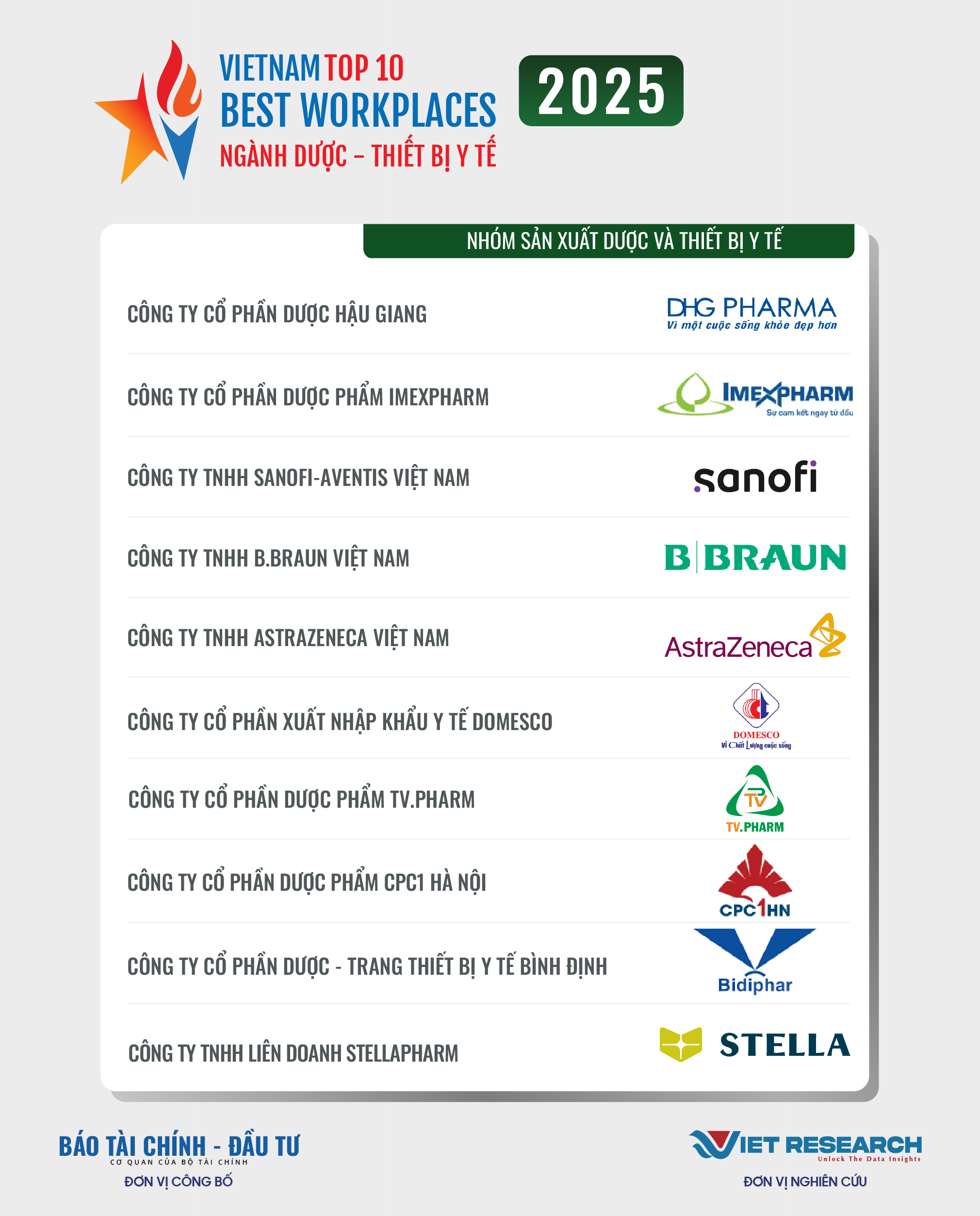 Nguồn: Top 10 Nơi làm việc tốt nhất Việt Nam – Ngành Dược – Thiết bị y tế (https://vbw10.vn/)