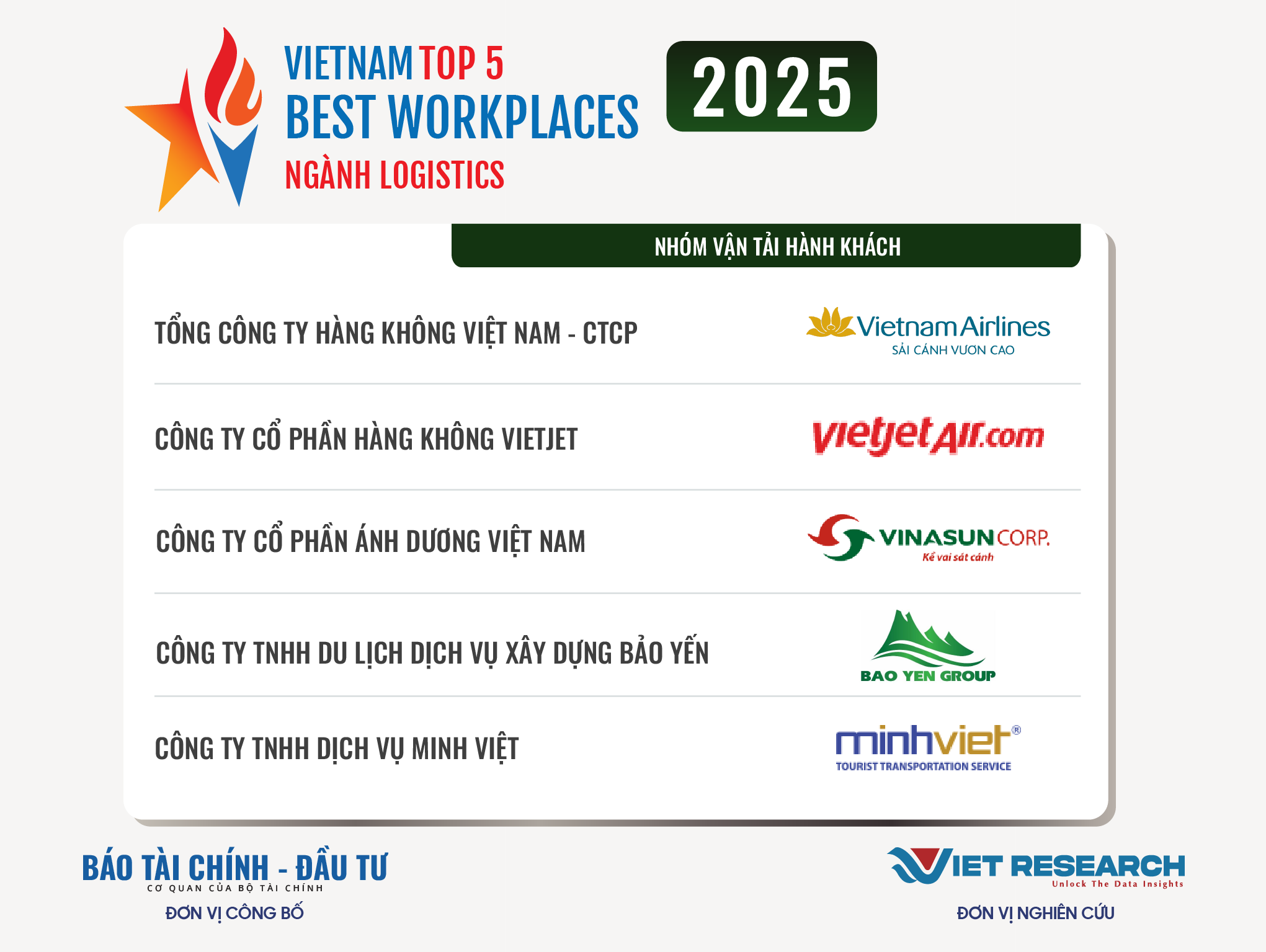 Năm 2025 là năm thứ tư liên tiếp Chương trình Top 10 Nơi làm việc tốt nhất Việt Nam – VBW10 trong các ngành kinh tế trọng điểm được Viet Research và Báo Tài chính – Đầu tư (Bộ Tài chính) nghiên cứu và công bố. Đây là chương trình thường niên nhằm tìm kiếm và tôn vinh những doanh nghiệp có môi trường làm việc tốt nhất trong các ngành, các doanh nghiệp tuyển dụng hàng đầu Việt Nam, những thành tố quan trọng tạo cơ hội việc làm, góp phần chung vào sự phát triển bền vững của đất nước và nền kinh tế trong giai đoạn mới. Những doanh nghiệp xuất sắc góp mặt trong VBW10 đóng vai trò quan trọng trong việc định hình và nâng cao chất lượng thị trường lao động quốc gia, đóng vai trò dẫn dắt trong việc thúc đẩy trách nhiệm xã hội và phát triển bền vững, tạo ra giá trị lâu dài cho các cổ đông, người lao động, nền kinh tế và xã hội.