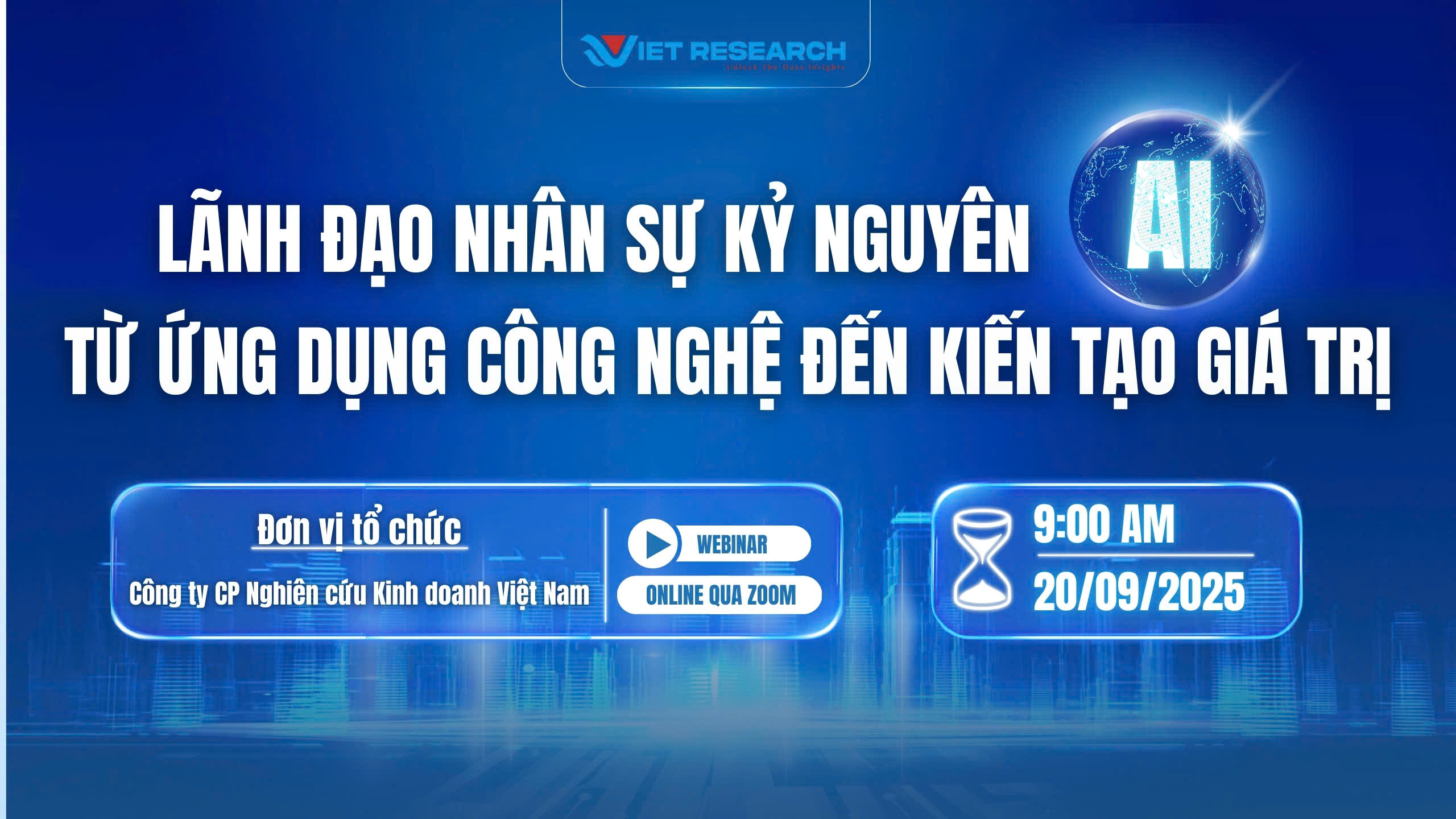 Sáng ngày 20 tháng 09 năm 2025, Viet Research đã tổ chức thành công Hội thảo trực tuyến chuyên đề về vai trò của AI trong quảng trị nhân sự với chủ đề: Lãnh đạo nhân sự kỷ nguyên AI: Từ ứng dụng...