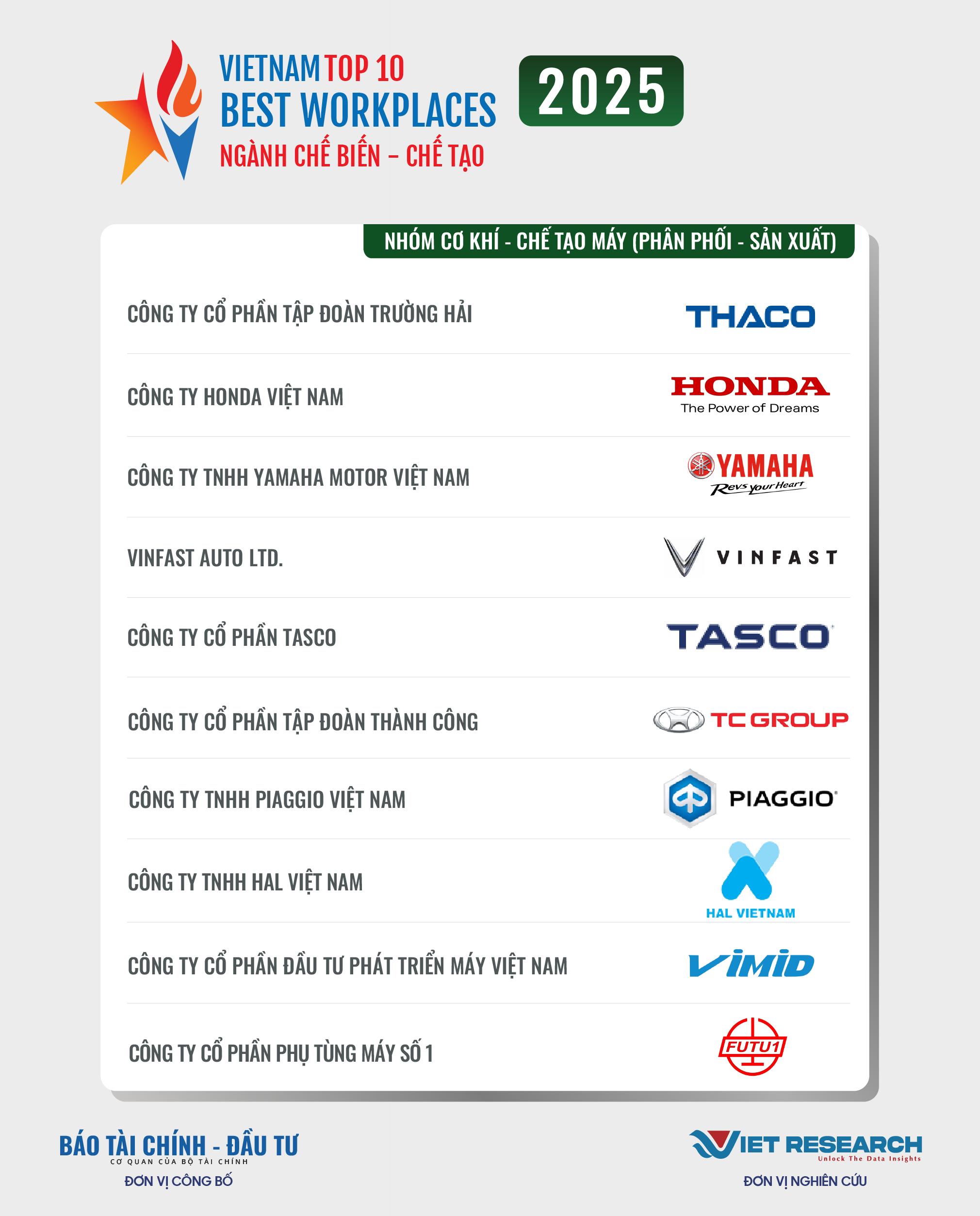 Năm 2025 là năm thứ tư liên tiếp Chương trình Top 500 Nhà tuyển dụng hàng đầu Việt Nam (VBE500) và Top 10 Nơi làm việc tốt nhất Việt Nam (VBW10) trong các ngành kinh tế trọng điểm được Viet Research và Báo Tài chính...