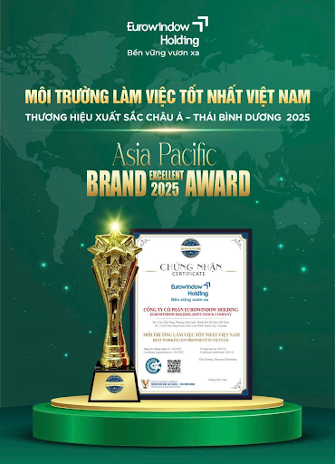 Theo đó, chiến lược đầu tư bài bản vào phát triển nguồn nhân lực, cùng chính sách đãi ngộ cạnh tranh và văn hóa doanh nghiệp gắn kết đã giúp Eurowindow Holding nhận giải thưởng Môi trường làm việc tốt nhất Việt Nam, đồng thời ghi tên vào bảng xếp hạng thường niên Nơi làm việc tốt nhất Việt Nam 2025 ngành vật liệu xây dựng.